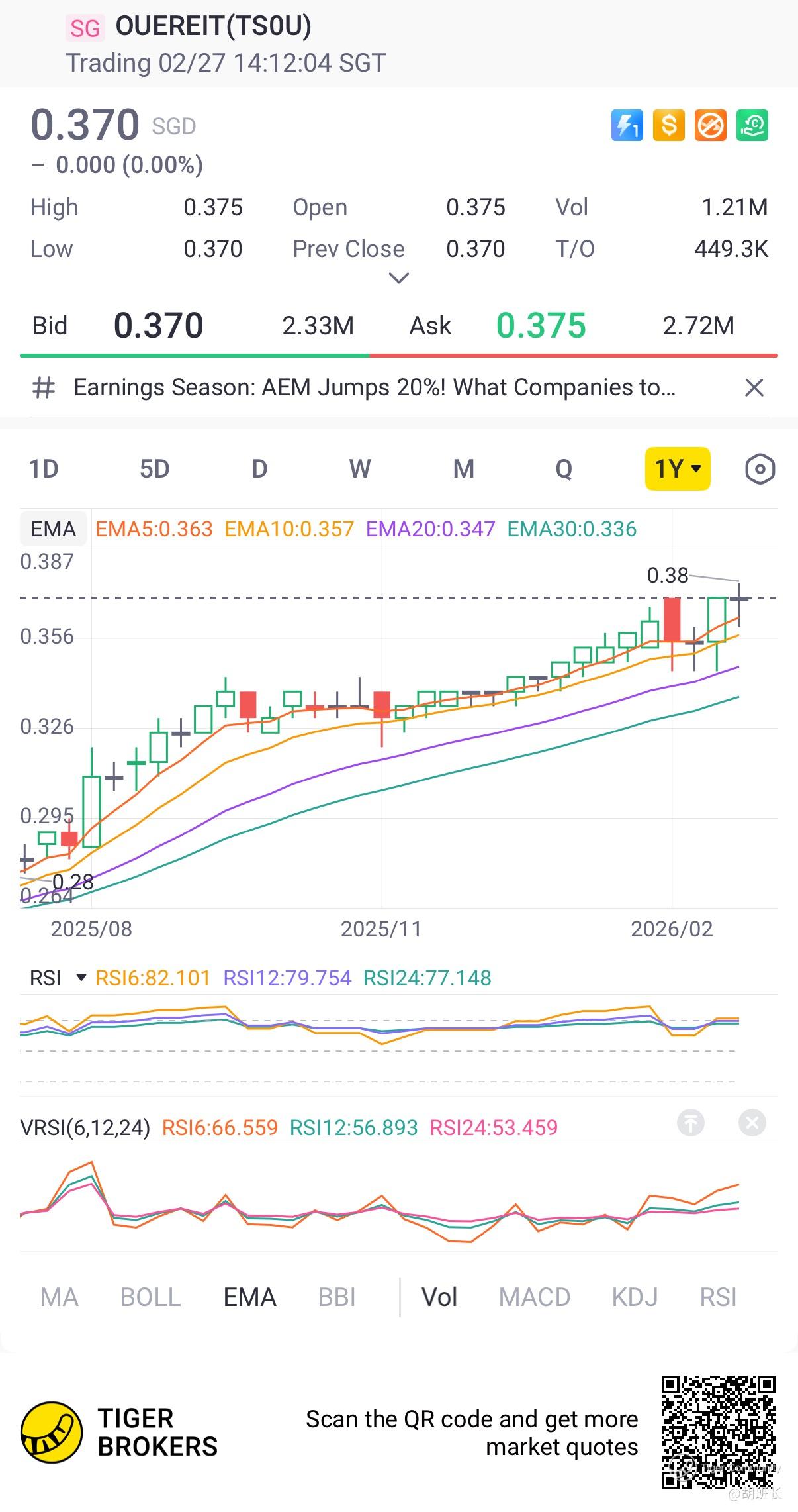 $OUEREIT(TS0U.SI)$ 52-week high