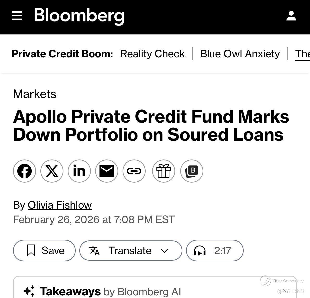 Apollo announced that its private credit fund, MidCap Financial Investment Corp. (MFIC), has reduced its dividend and re-evaluated its asset values, "due to challenges in certain segments of its loan portfolio." - Zero Hedge