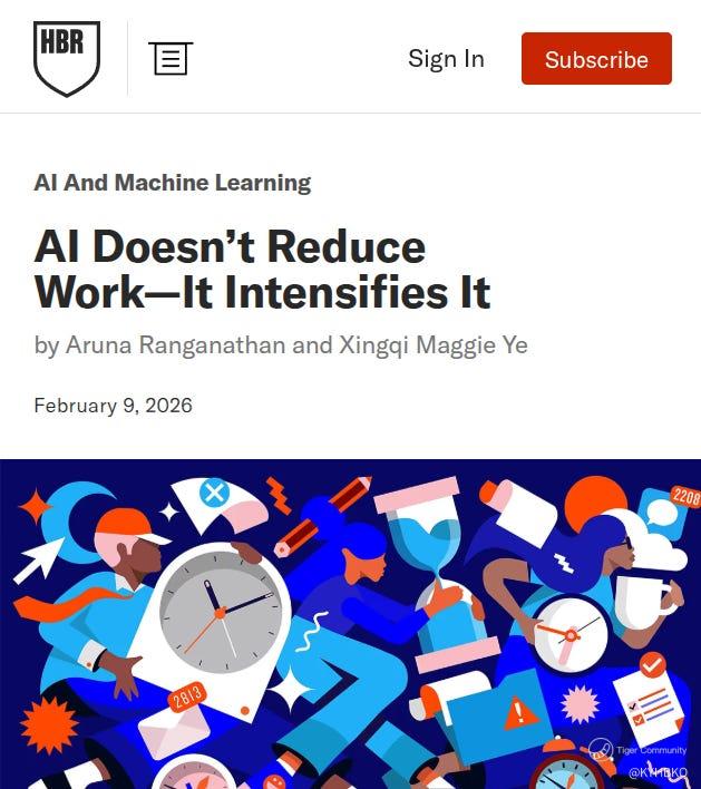 “AI does not reduce work. It intensifies it.“ Powerful new Harvard Business Review study. - X user Rohan Paul