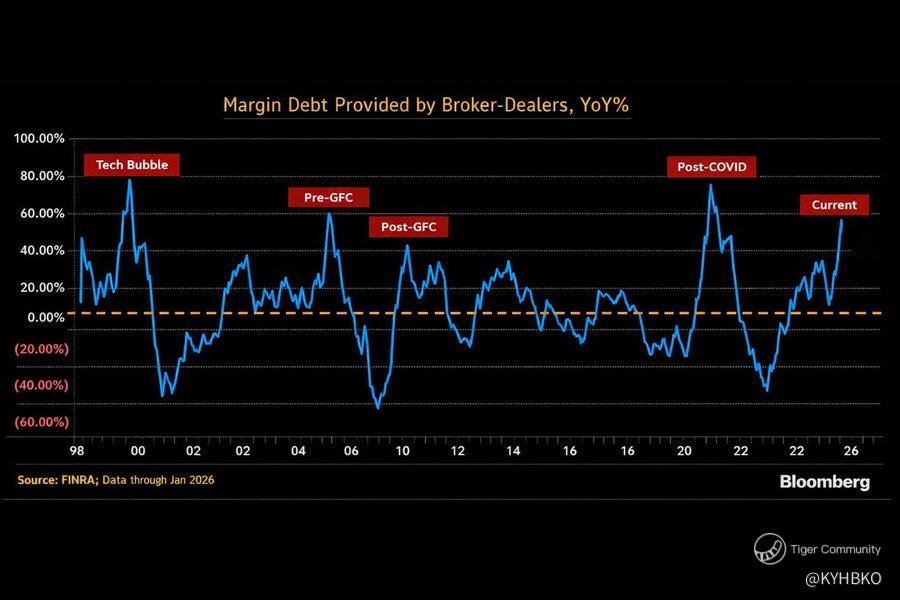 U.S. margin debt just hit $1.28 TRILLION. Last year alone +$342B. +36%. - X user Alex Mason