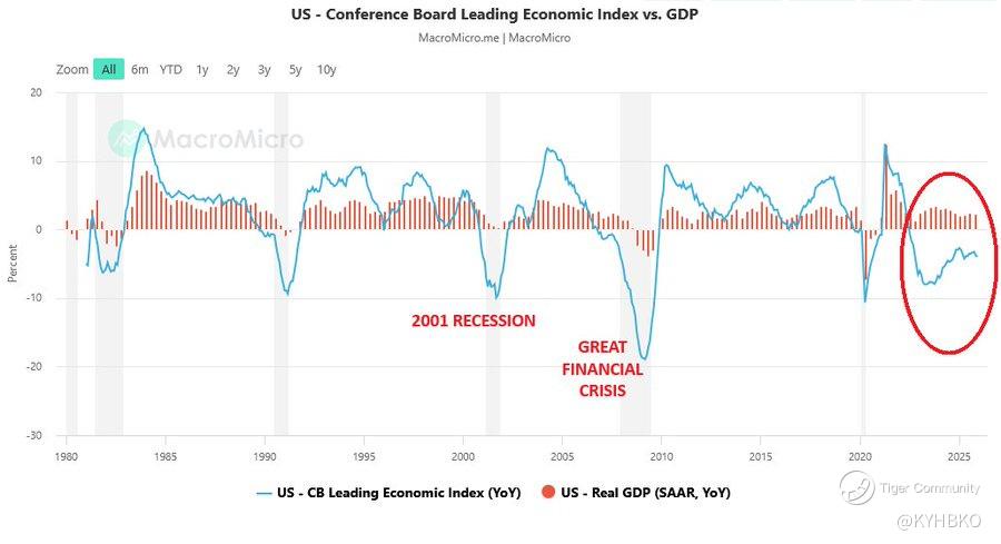 The Conference Board Leading Economic Index (LEI) dropped again in January, to the lowest level in 12 YEARS. The drawdown since the 2021 peak has been 18%, the biggest since the Great Financial Crisis. Such a drop has never been seen outside of recessions and is even bigger than in 2001. Why has the LEI collapsed so sharply? 1) Manufacturing recession; 2) Weak consumer expectations for business conditions; 3) Deteriorating job market - X user Global Markets Investor