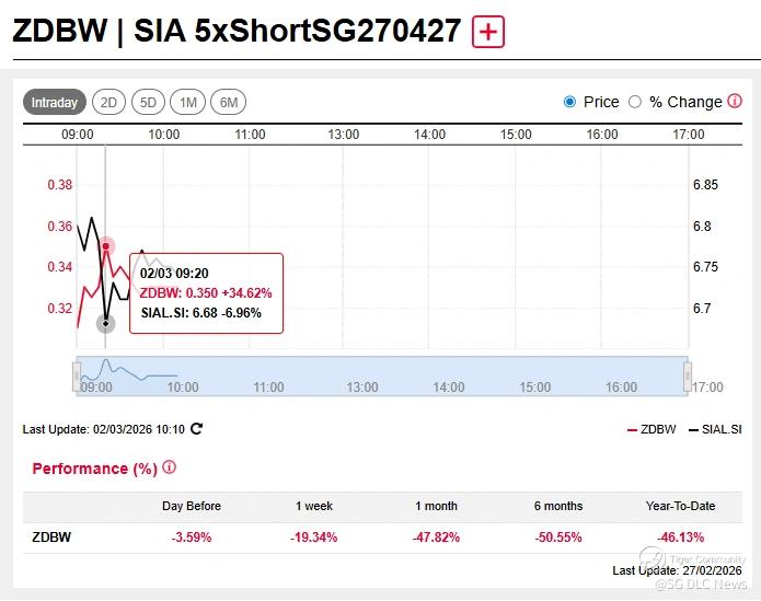 Tracking the underlying stock, $SIA 5xShortSG270427(ZDBW.SI)$ rose by 32% while the $SIA 5xLongSG280516(FHOW.SI)$ suffered losses of a similar magnitude.