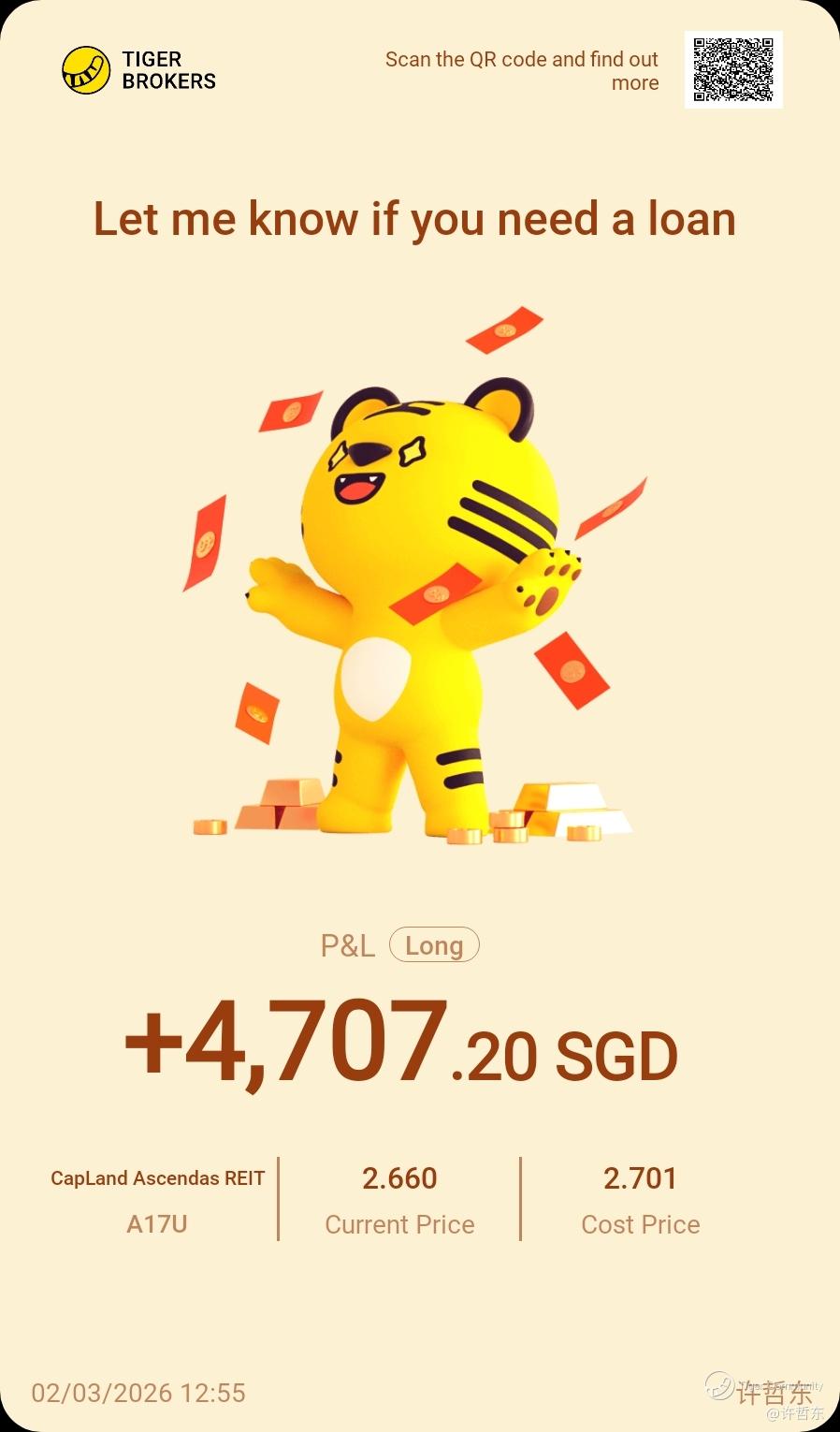 $CapLand Ascendas REIT(A17U.SI)$ today $2.64 add more 3000units