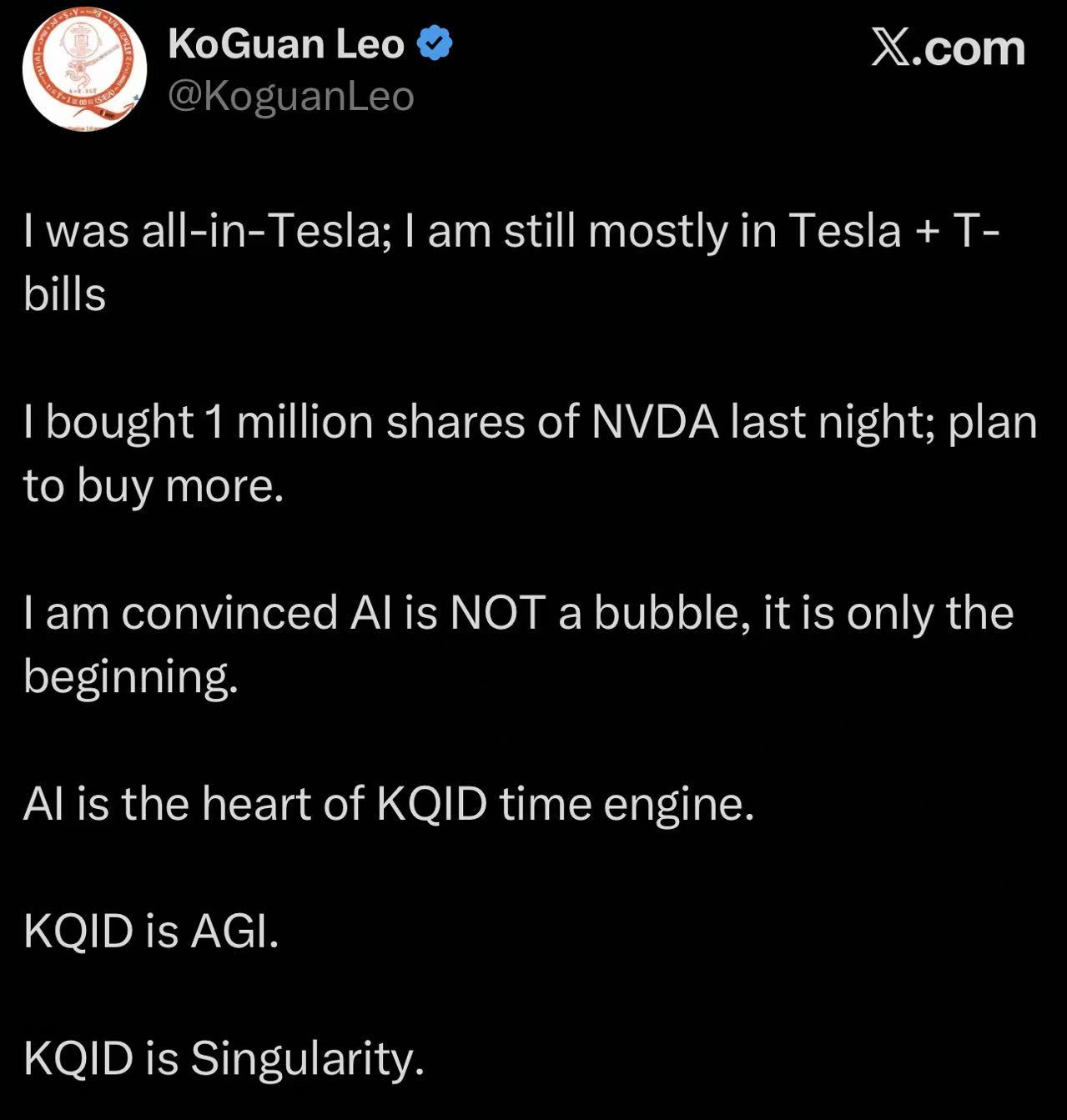 According to a post he shared on X, KoGuan bought 1 million shares of NVIDIA on March 3, and stated: