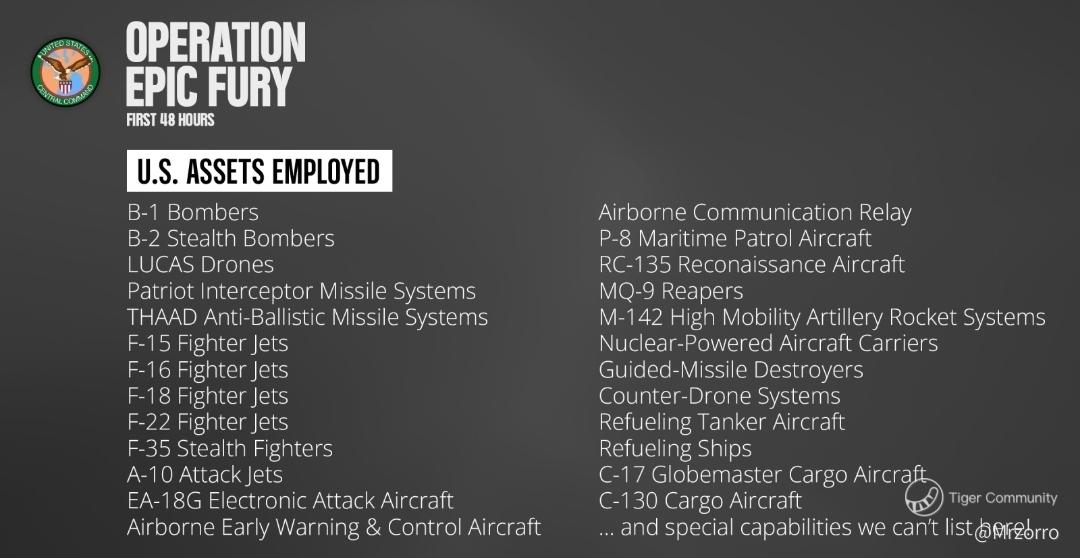 The U.S. Central Command recently disclosed on social media the defense equipment used in military actions against Iran.