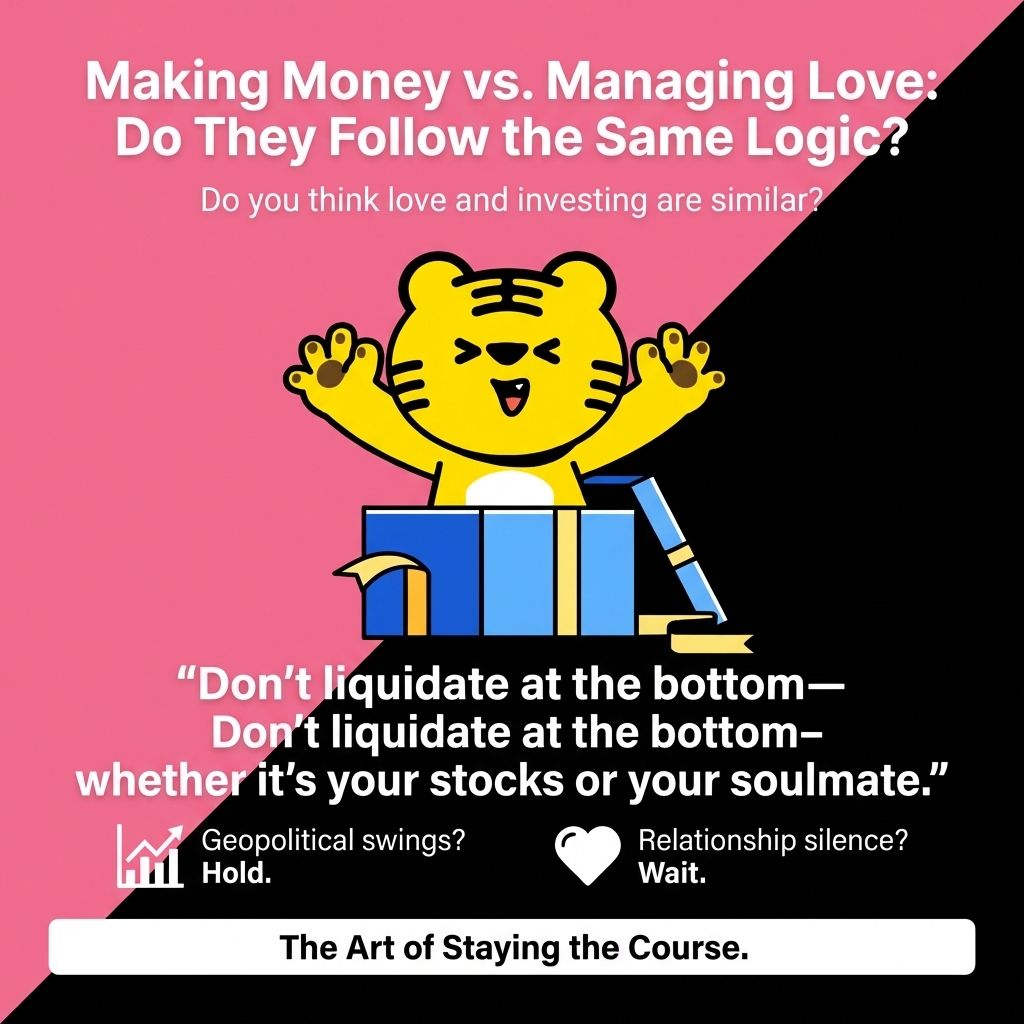 Looking back at this week’s market—where geopolitical tensions triggered a sharp drop followed by a deep V-shaped rebound—the more I think about it, the more it feels like love and investing are essentially about managing human weaknesses.