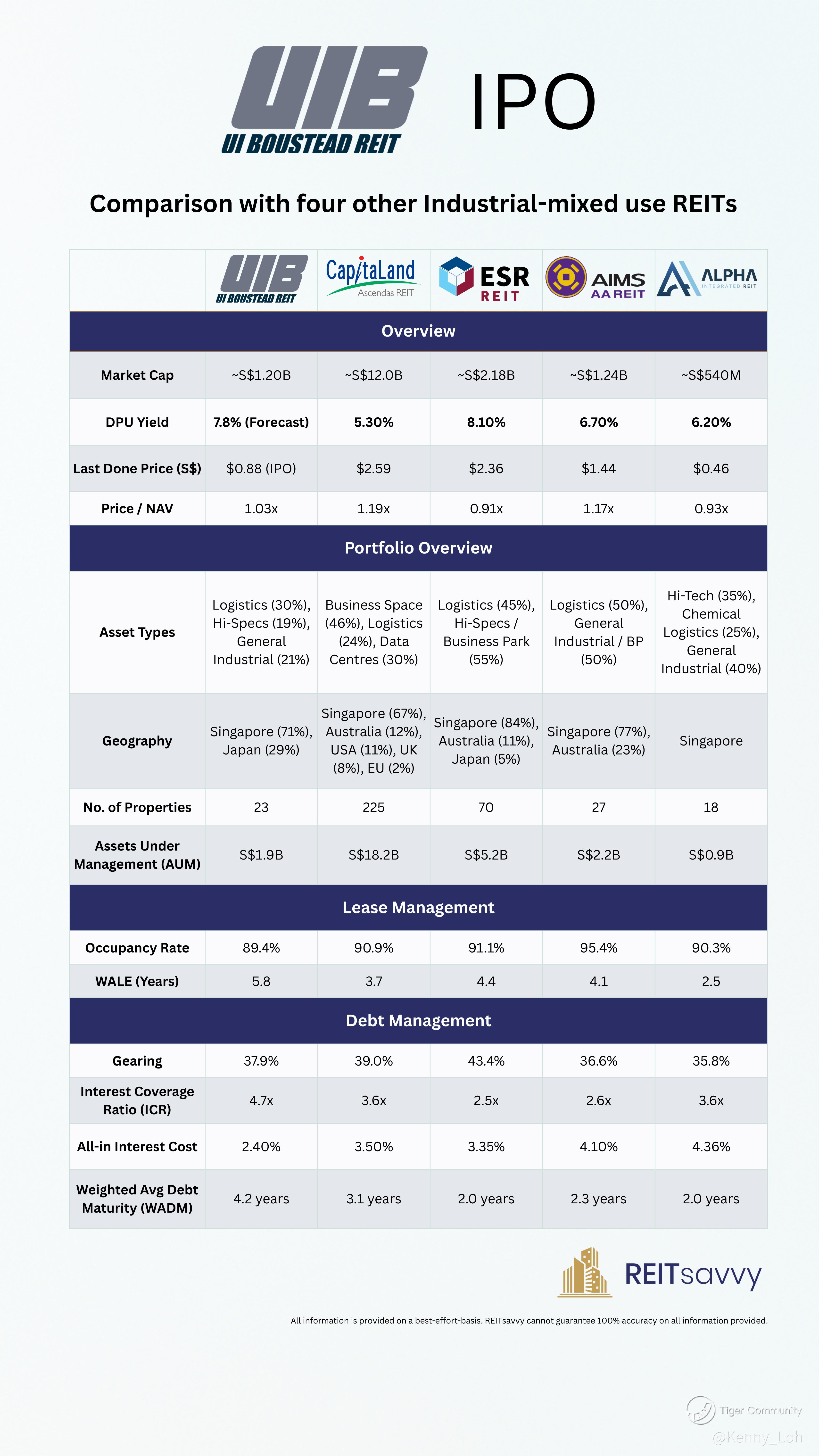 $UIBREIT(UIBU.SI)$ $CapLand Ascendas REIT(A17U.SI)$ $ESR REIT(9A4U.SI)$ $AIMS APAC Reit(O5RU.SI)$ $Alpha Integrated REIT(M1GU.SI)$
