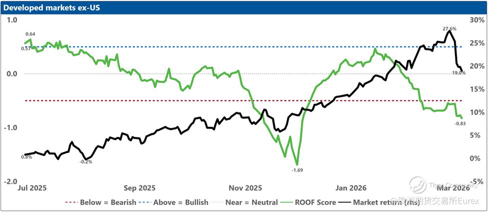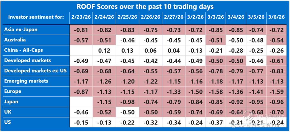 In practice, however, as the ROOF Scores below suggest, investors are finding this kind of self‑imposed amnesia difficult to achieve. Frontal lobes remain firmly engaged. Until clarity emerges on how this conflict ends, emotional overreactions should be expected.
