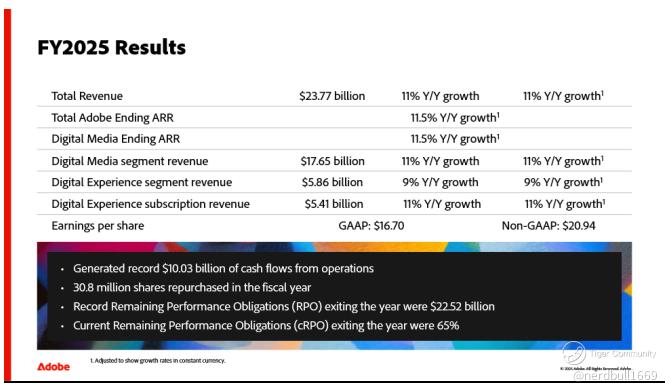 1. The "Mid-Single Digit" Fear Adobe guided FY2026 revenue to $25.9B–$26.1B. While this was technically a "beat" versus consensus, the implied growth rate of ~9% signaled a slight deceleration from 2025.