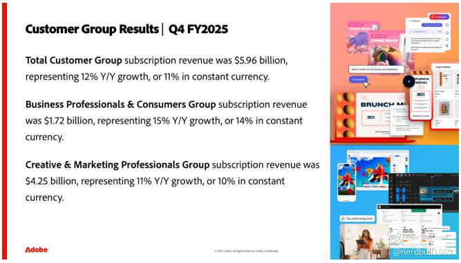 3. Strategic Shift in Reporting Starting in FY2026, Adobe changed how it guides, focusing on Customer Groups (Creative & Marketing Professionals vs. Business Professionals & Consumers) rather than just product segments.