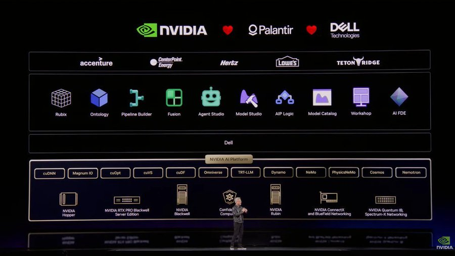 What's more, $NVIDIA(NVDA)$ highlighted PLTR + $Dell Technologies Inc.(DELL)$ as key partners for deploying AI platforms on-prem and in air-gapped environments.