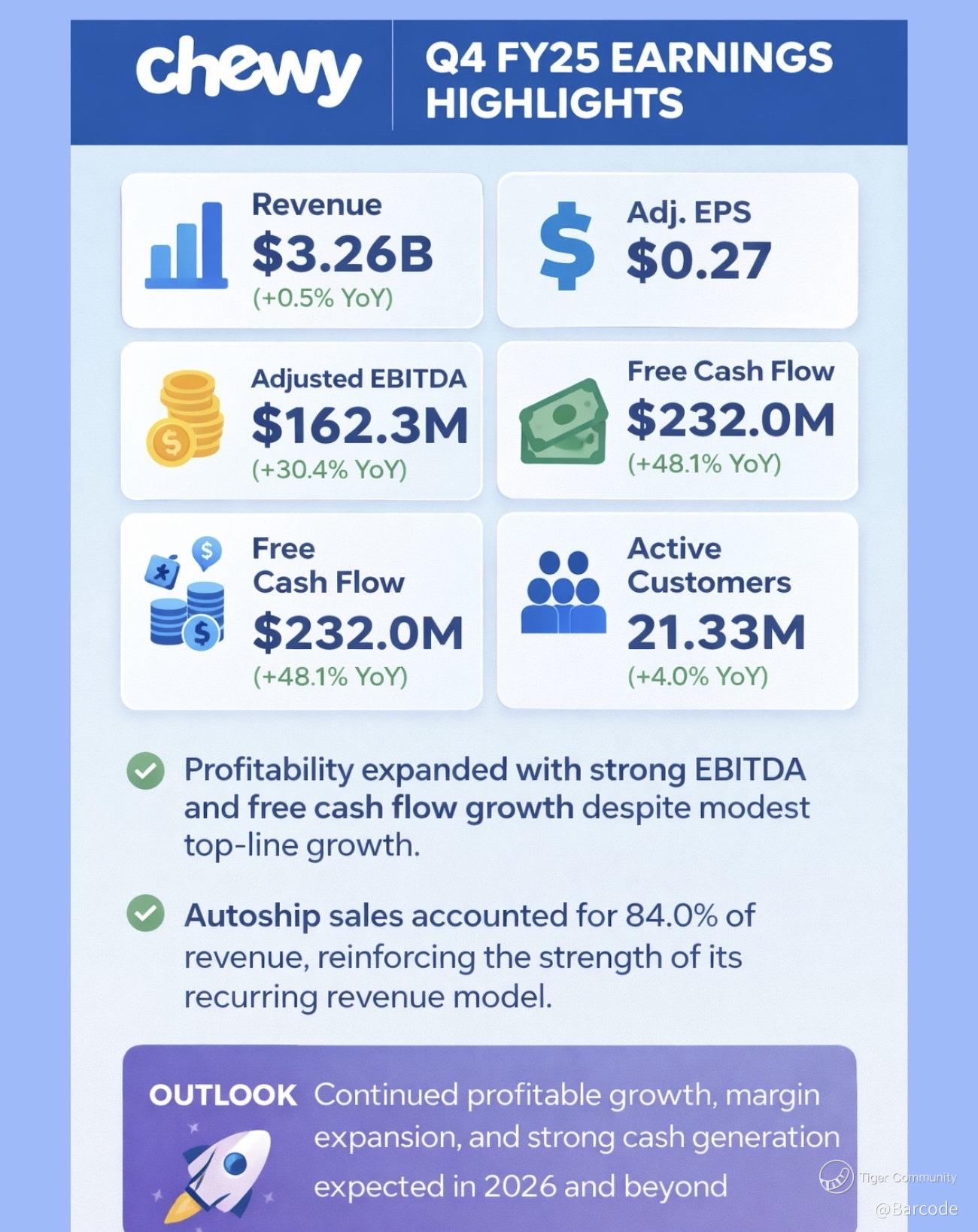 Chewy is no longer a pure growth story. It is evolving into a cash flow-generative platform with embedded recurring revenue and expanding margins. That combination is rarely priced correctly in the early stages of transition.