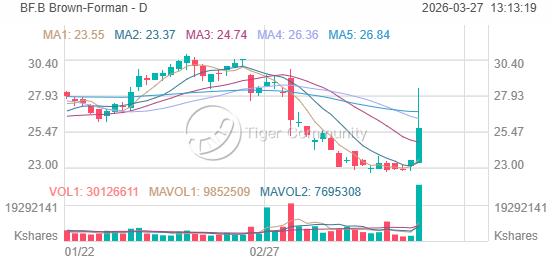 $Brown-Forman (BF.B) Surged +9.58%: Strong Reversal from Support, $27 Resistance in Sight