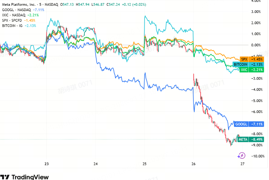 Thursday’s selloff felt like a clear shift in market tone. The NASDAQ Composite Index dropping over 2% and the S&P 500 Index breaking below 6,500 tells me this isn’t just noise — it’s broad risk-off. With $Meta Platforms, Inc.(META)$ and $Alphabet(GOOGL)$ leading declines on legal concerns, plus Bitcoin losing momentum, sentiment is clearly fragile.