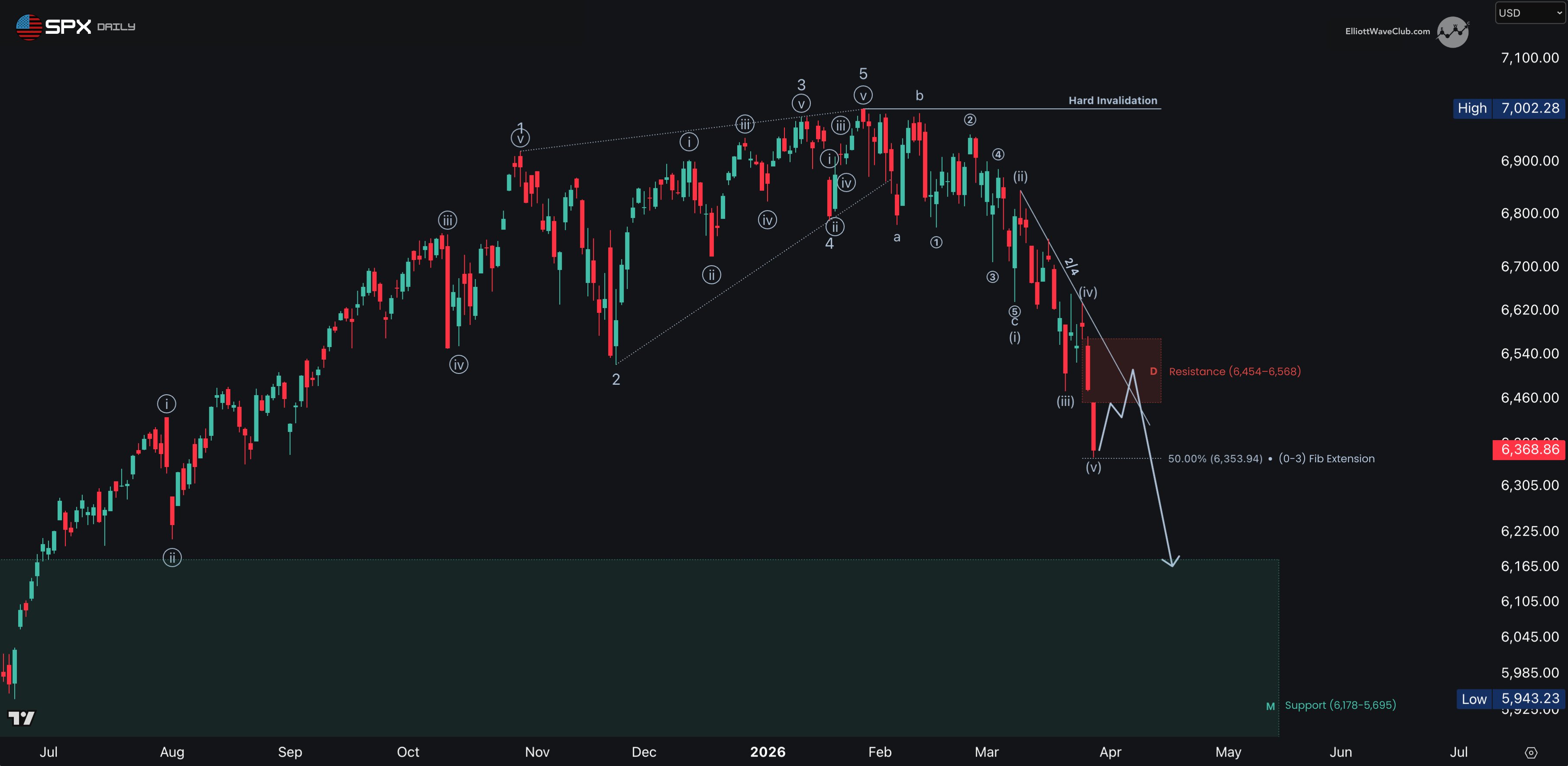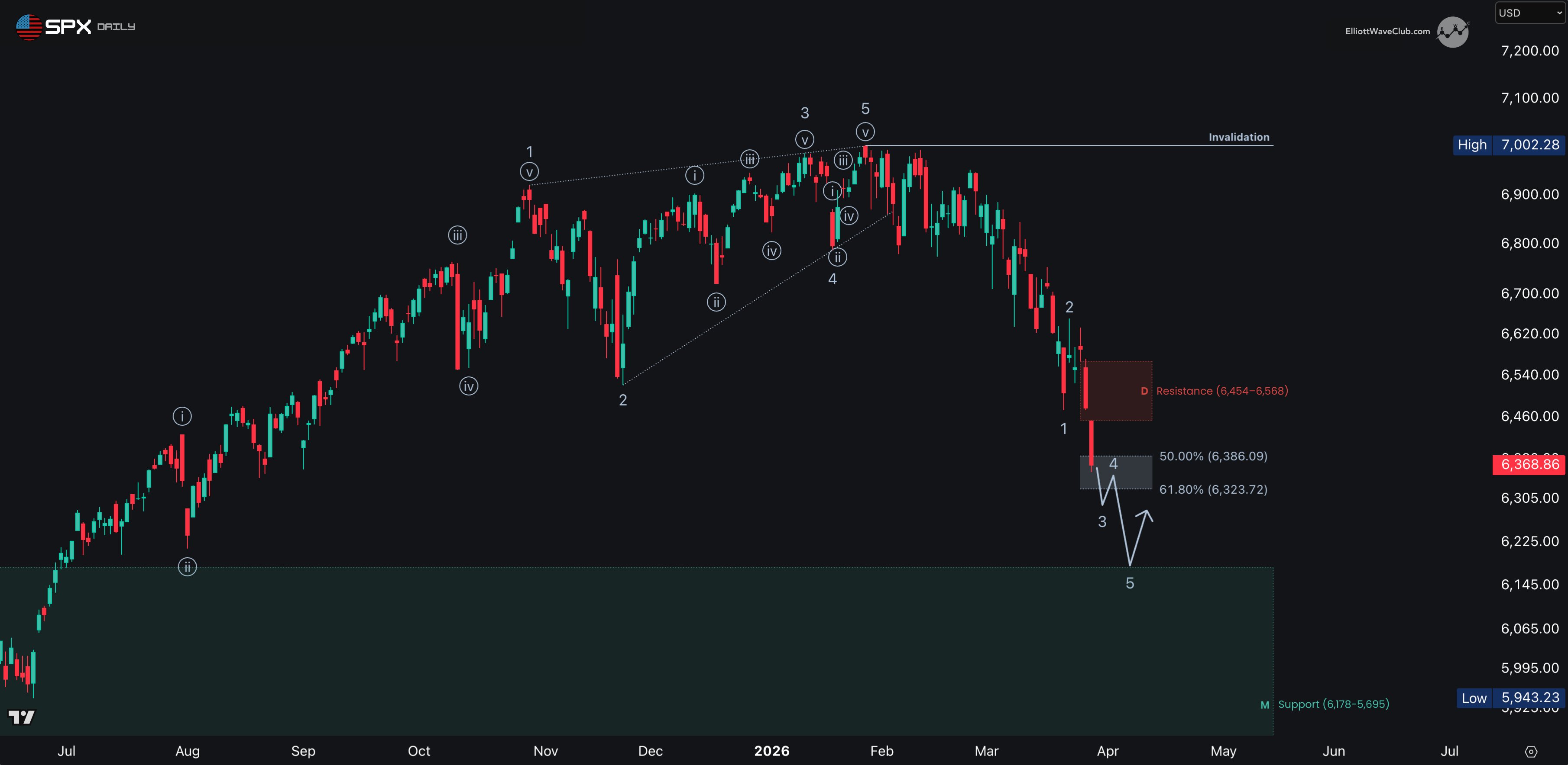 While the 5-waves down calls for an upside retracement, $S&P 500(.SPX)$ has formed Daily FVG resistance at 6454–6568.