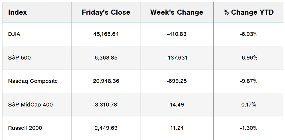 U.S. stocks ended a volatile week mixed. Small- and mid-cap indexes snapped four-week losing streaks, while the S&P 500 and Nasdaq posted their fifth straight weekly declines as large-cap tech remained under pressure. Geopolitical headlines and oil price swings drove sentiment.