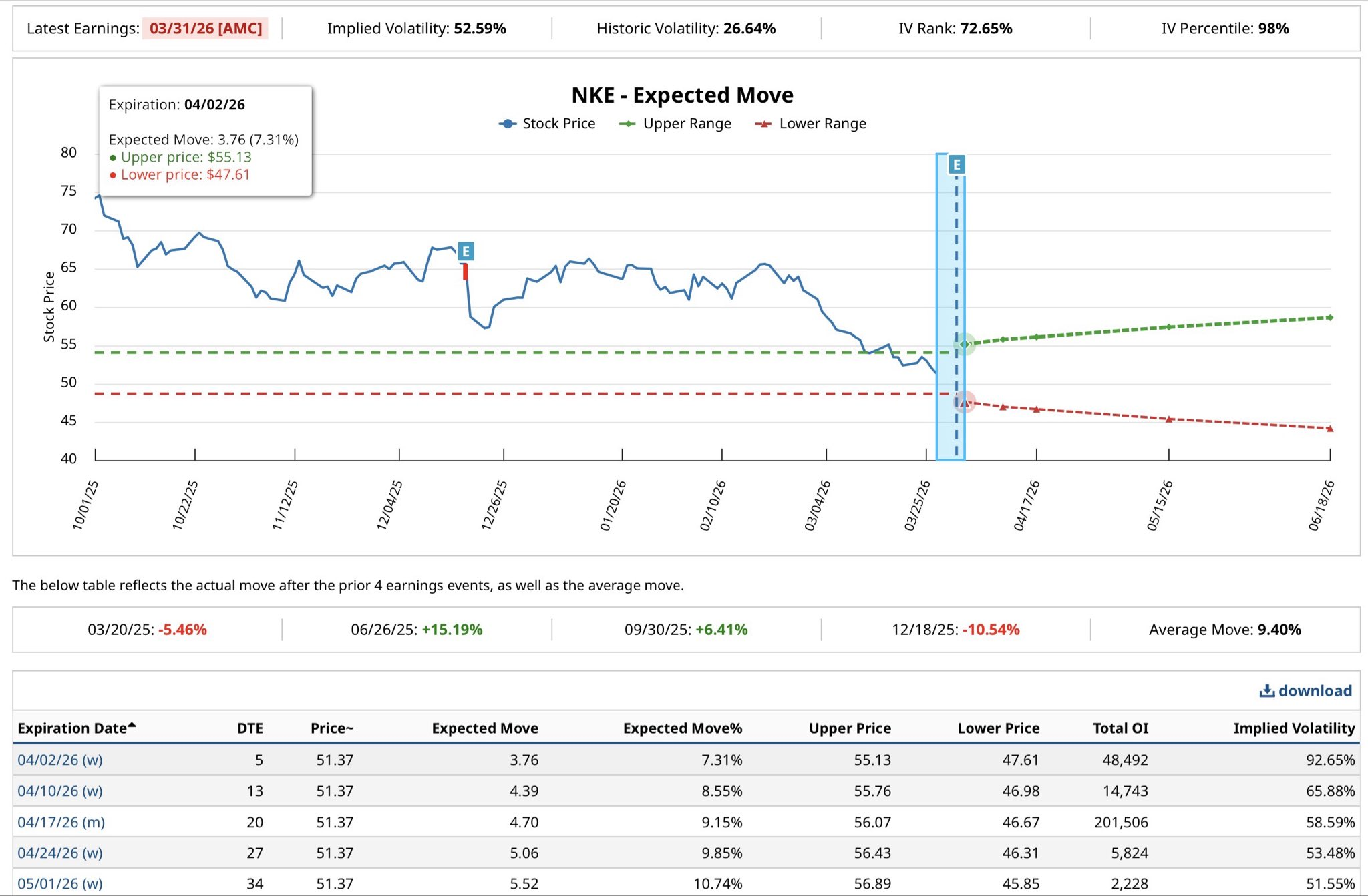 $Nike(NKE)$ and $RH(RH)$ announce earnings this week. Am looking at both for a premium-capture play (prefer not to take assignment of shares).