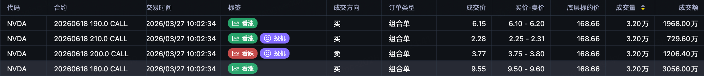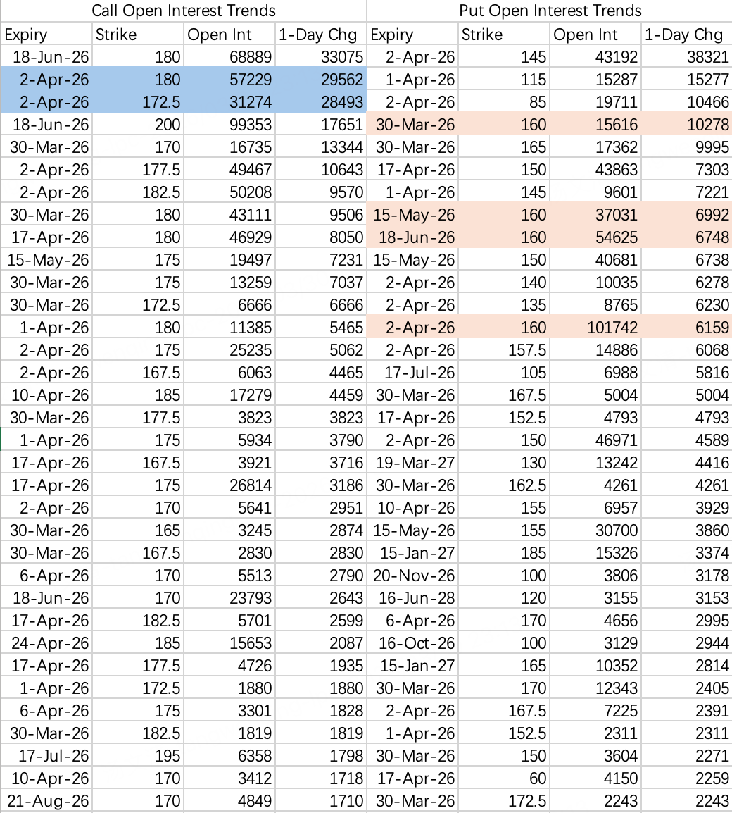 Institutional call spread for this week: sell 172.5 call $NVDA 20260402 172.5 CALL$ , buy 180 call $NVDA 20260402 180.0 CALL$ .