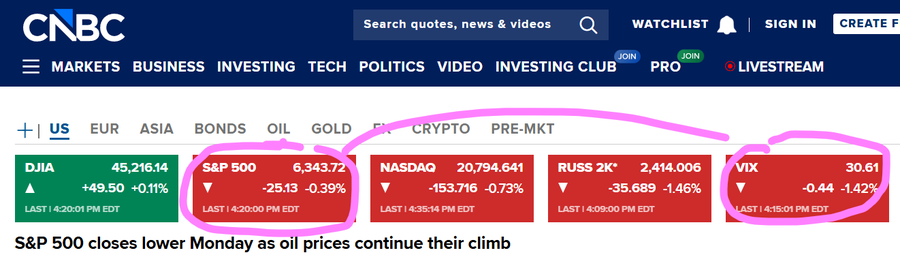 (1) With SPX closed 0.4% lower, $Cboe Volatility Index(VIX)$ dropped too--that is a signal of local bottom.