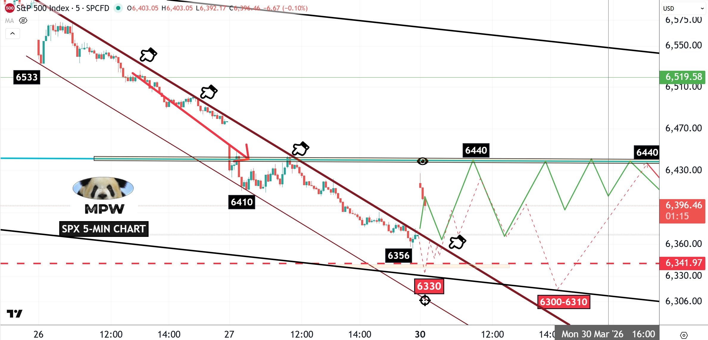 (1) dragged by two forces between 6440 and 6360, there won't be any breakthrough today.