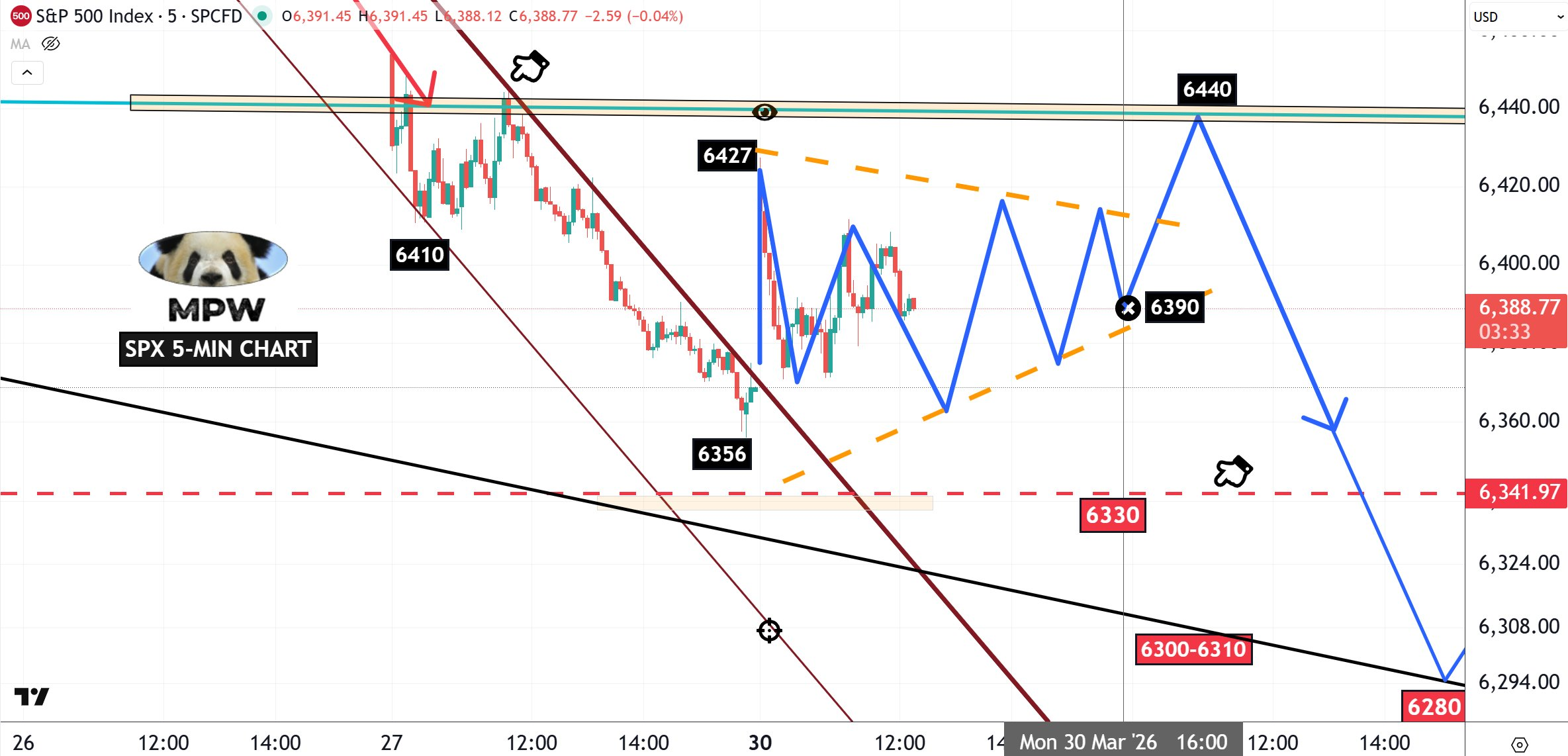 (2) I would bet that SPX closes near 6388, with chopping moves in-between for the next four hours.