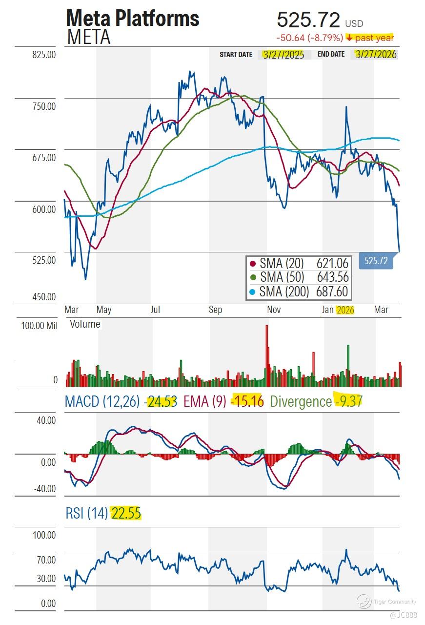 On Fri, 27 Mar 2026, META ended the week at $525.72 /share.