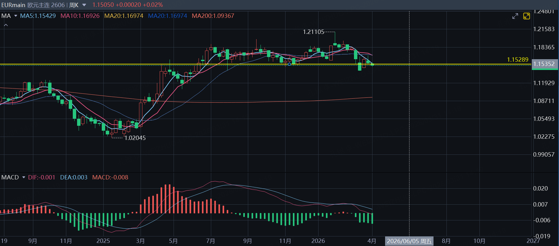 For now, you can follow the 5-week moving average to attempt shorting the Euro or Micro Euro. If it breaks above the 5-week moving average, execute an immediate stop-loss. Once there is definitive news of a US-Iran resolution, completely abandon the Euro shorting strategy immediately.
