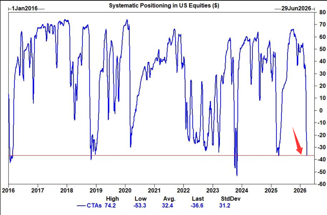 Risk 2: CTA funds have finished selling off their US equity positions, and their upward convexity is currently extremely high. Consequently, any positive news would spark tremendous rebound momentum. CTA funds have heavily dumped US stocks, bringing their positions to historical lows, making their convexity highly bullish right now.