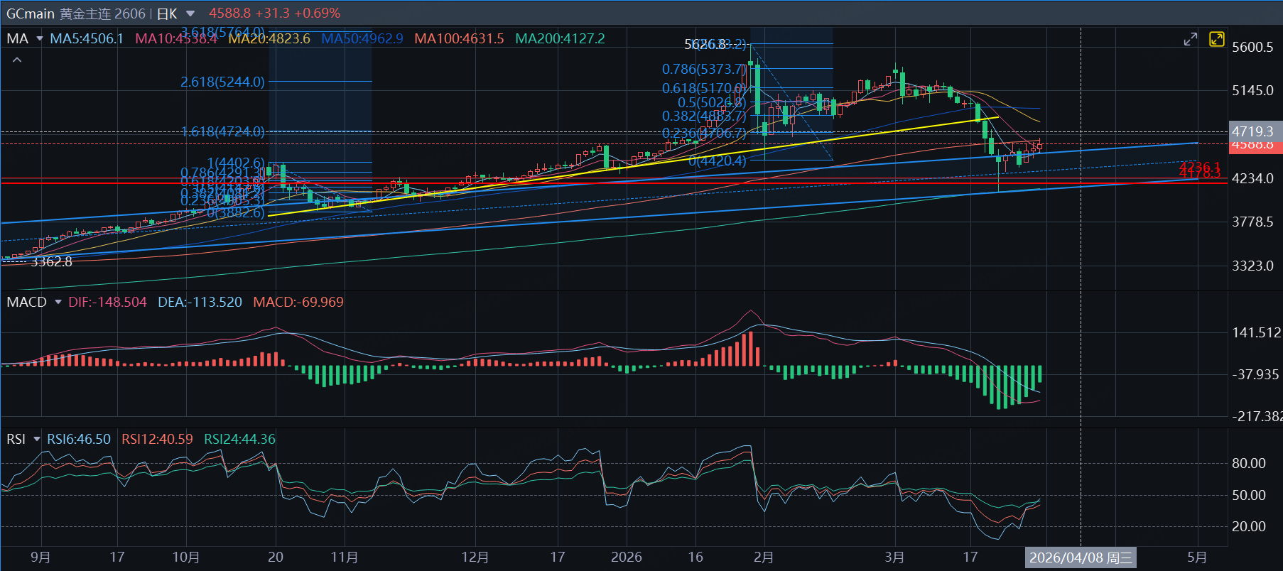 If gold breaks above the 20-day moving average, it technically signals a continued upward move to retest the previous high of 5,600. Conversely, a breakdown below the 4,200 red line could trigger a test of the 3,600 low. You can formulate your trading strategies using these reference points.