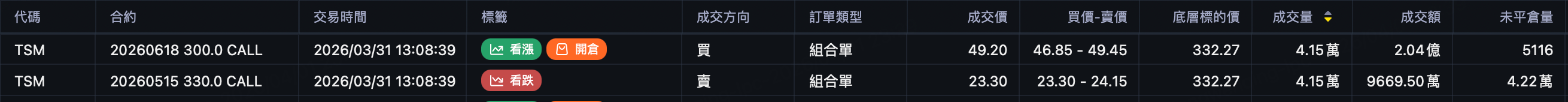 A similar pattern appeared in TSMC: 34,000 contracts of the June 370 call $TSM 20260618 370.0 CALL$ .