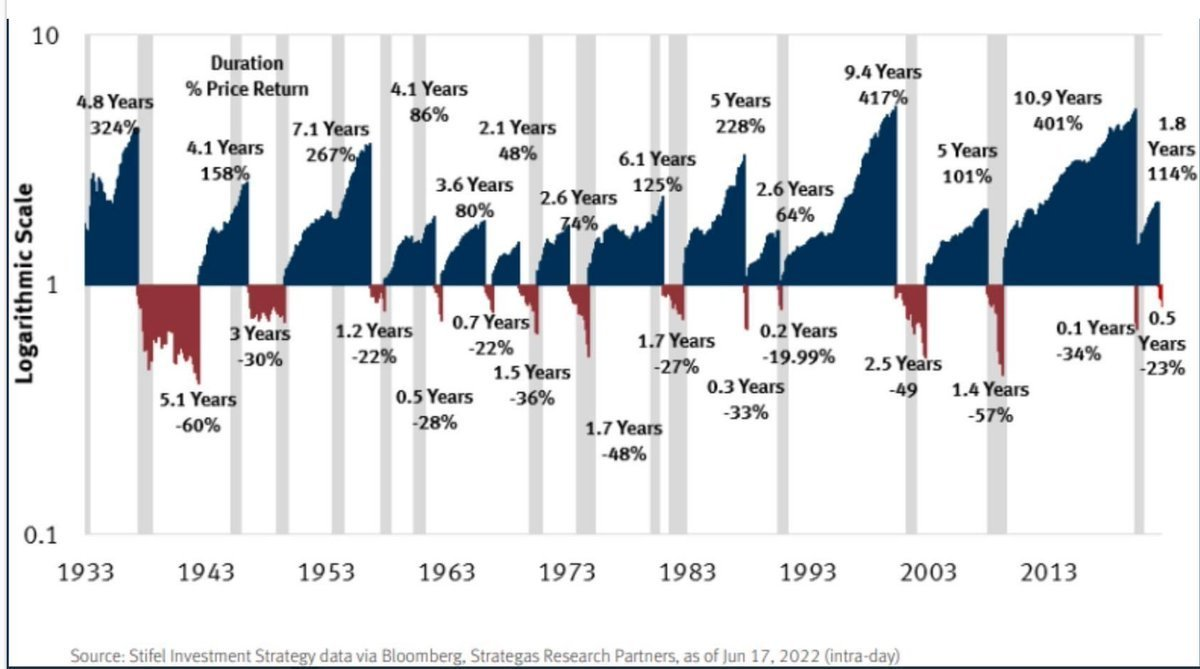 Bull markets tend to last much longer, and be far more prosperous than the subsequent bear markets: $S&P 500(.SPX)$