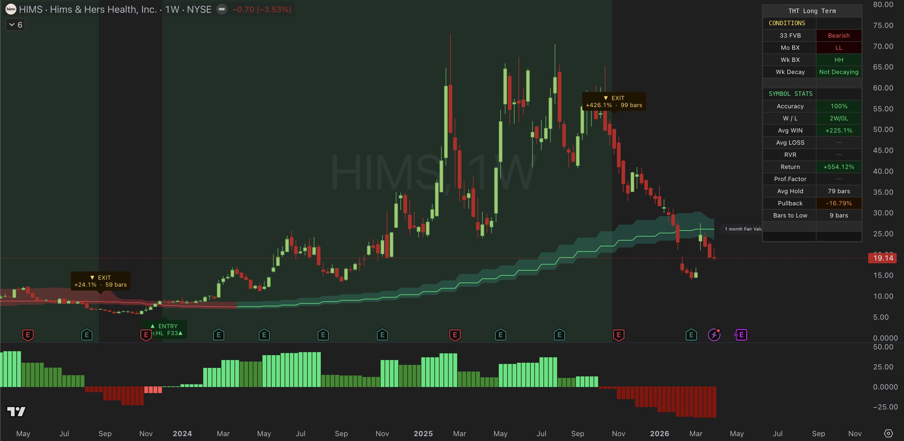 $HIMS Down 60% Buyers Yet to Show Monthly BX Signals No Entry