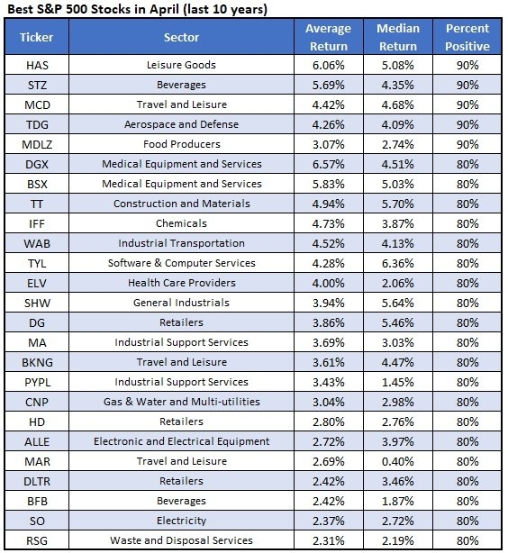 I just backtested the last 10 years of April data, and these 20 $S&P 500(.SPX)$ names have delivered positive returns 80% of the time (or better) when spring rolls around. Coincidence? Let's dig in. 👇