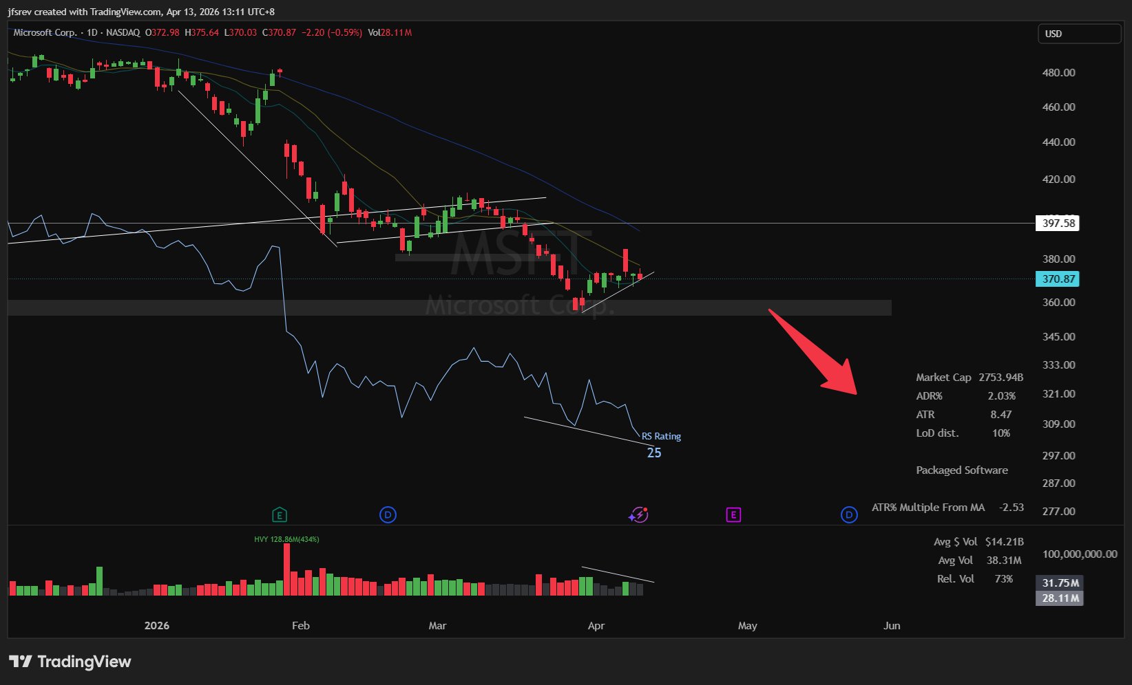 After leading the initial breakdown, $MSFT is forming another bear flag off the March 27 low, with VCP and RS bearish divergence developing even as the broader market rallied.