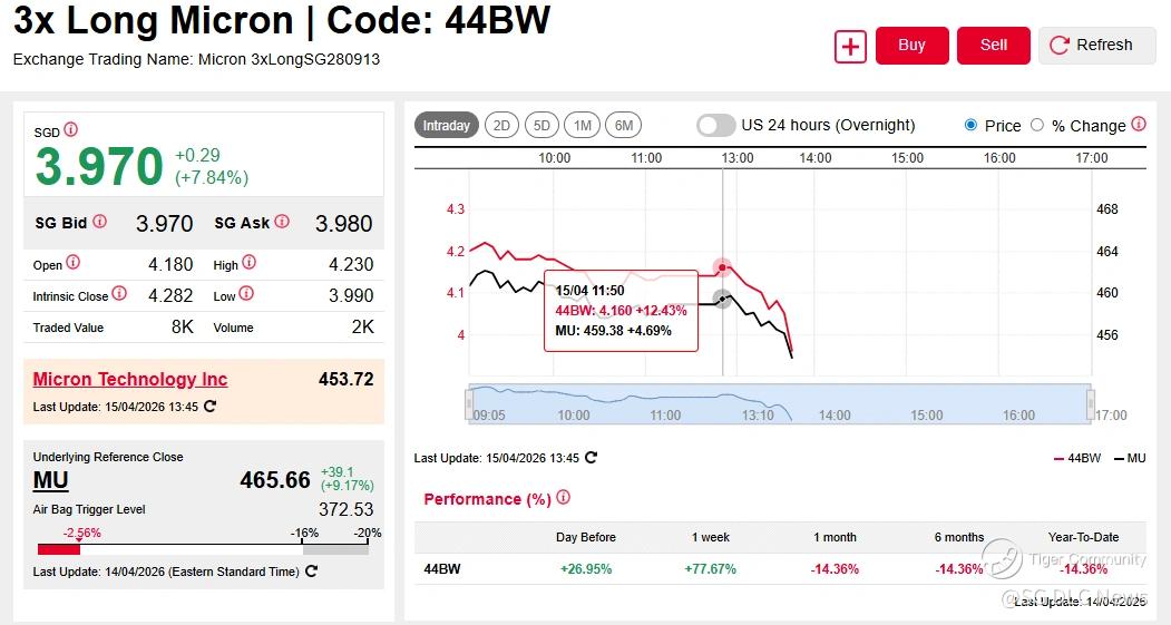 Among the biggest movers in the US market covered by the DLCs included $Micron Technology(MU)$ , which rose 9%, sending the Micron 3x Long DLC up 27% on a US market close-to-close basis, while the Micron 3x Short DLC declined by a similar magnitude.