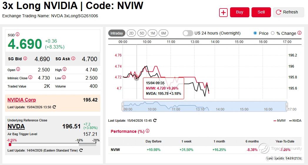 $NVIDIA(NVDA)$ rose 3.8% to log its 10th consecutive day of gains, reinforcing near-term momentum in big-cap tech names. Correspondingly, the Nvidia 3x Long DLC climbed 11% and the Nvidia 3x Short DLC declined by a similar magnitude.