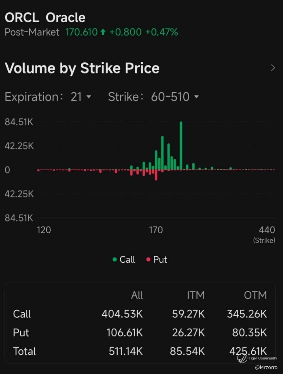 Call options that give their holder the right to buy Oracle shares at $175 by Friday attracted the heaviest trading, with 47,390 contracts changing hands, more than double the open interest of 21,070 contracts, exchange data tracked by moomoo showed. The price on that contract more than doubled as the rally in shares took the stock price closer to that strike price, increasing the likelihood that the call option will be in the money before it expires in two days.