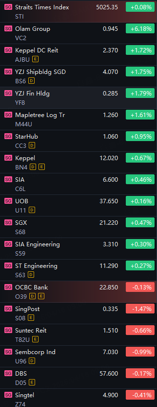 SG Morning Call|SG Stocks Opened Flat; Olam Group Up 6%; Keppel DC Reit, YZJ Shipbldg, YZJ Fin, Mapletree Log StarHub Up 1%; SingPost And Sembcorp Down 1%