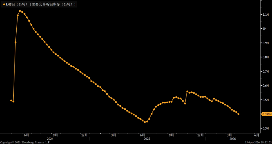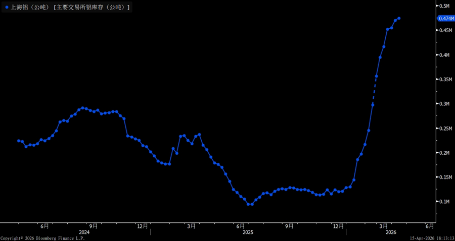 Looking at the marginal changes in the latest week, aluminum inventories across the three exchanges continued to show clear divergence. COMEX aluminum inventories kept falling, with the latest reading dropping to 1,864 tons, indicating that U.S. aluminum inventories remain in a low-level destocking phase. LME aluminum inventories also declined further to around 0.399M, extending a longer-running downtrend and suggesting that the tightness in overseas spot markets has not materially eased. By contrast, Shanghai aluminum inventories edged up to 0.474M and remained near the high end of this year’s range, indicating that domestic inventory pressure is still building.