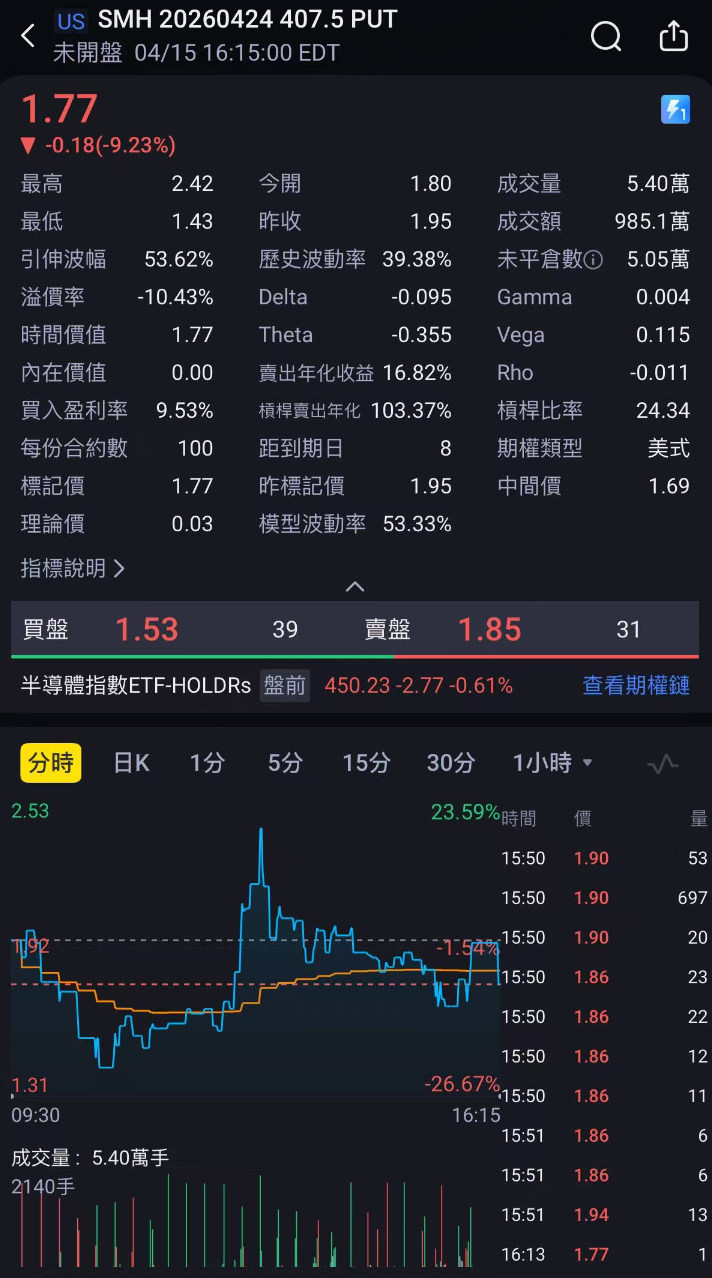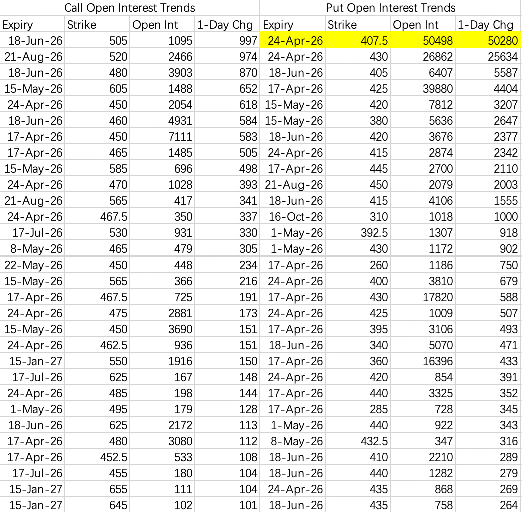 Another large put order: $SMH 20260424 407.5 PUT$ — 50k contracts, notional ~$9M.