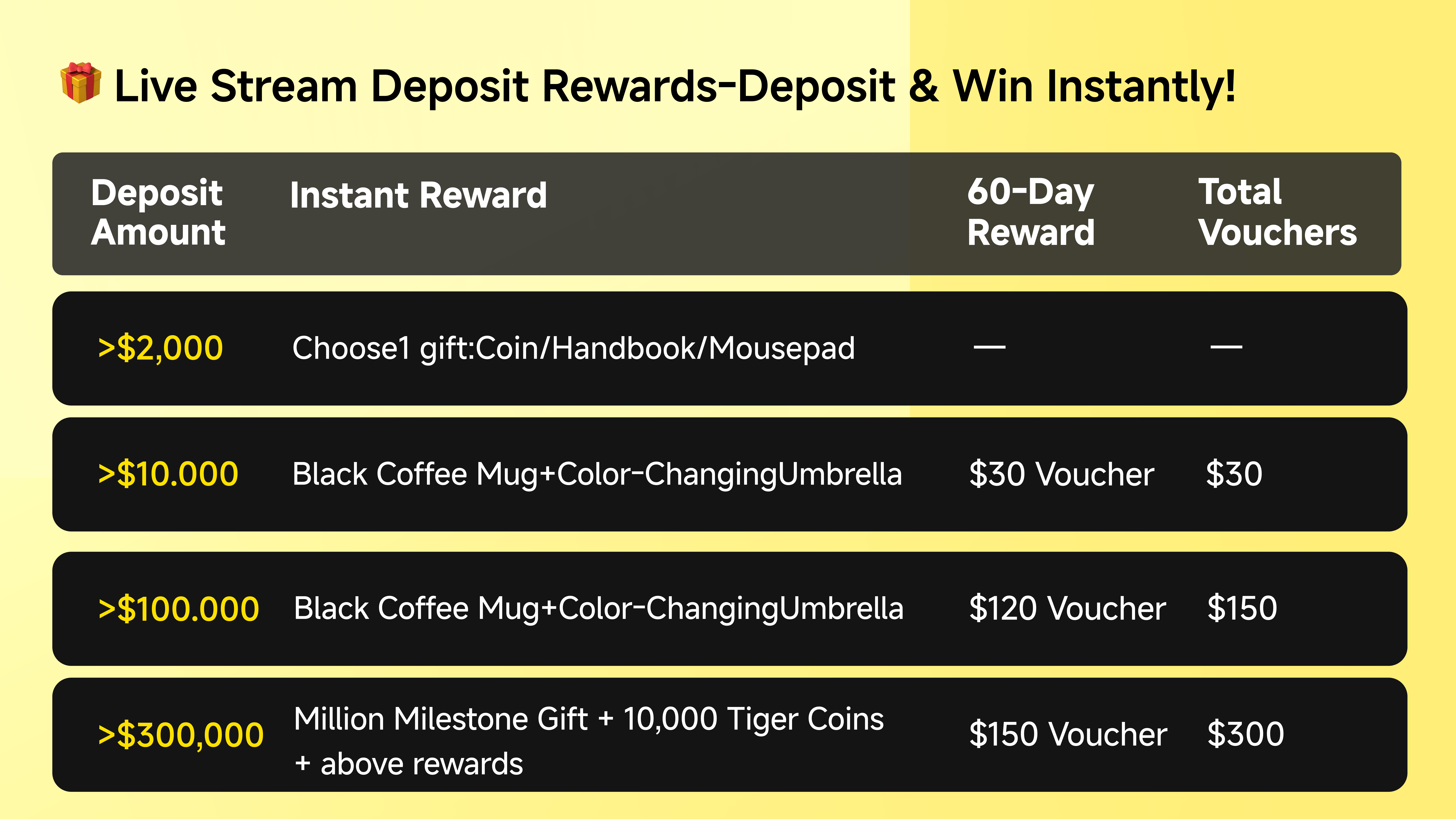 ๐ Exclusive Tiger Deposit Rewards โ Live Stream Only!