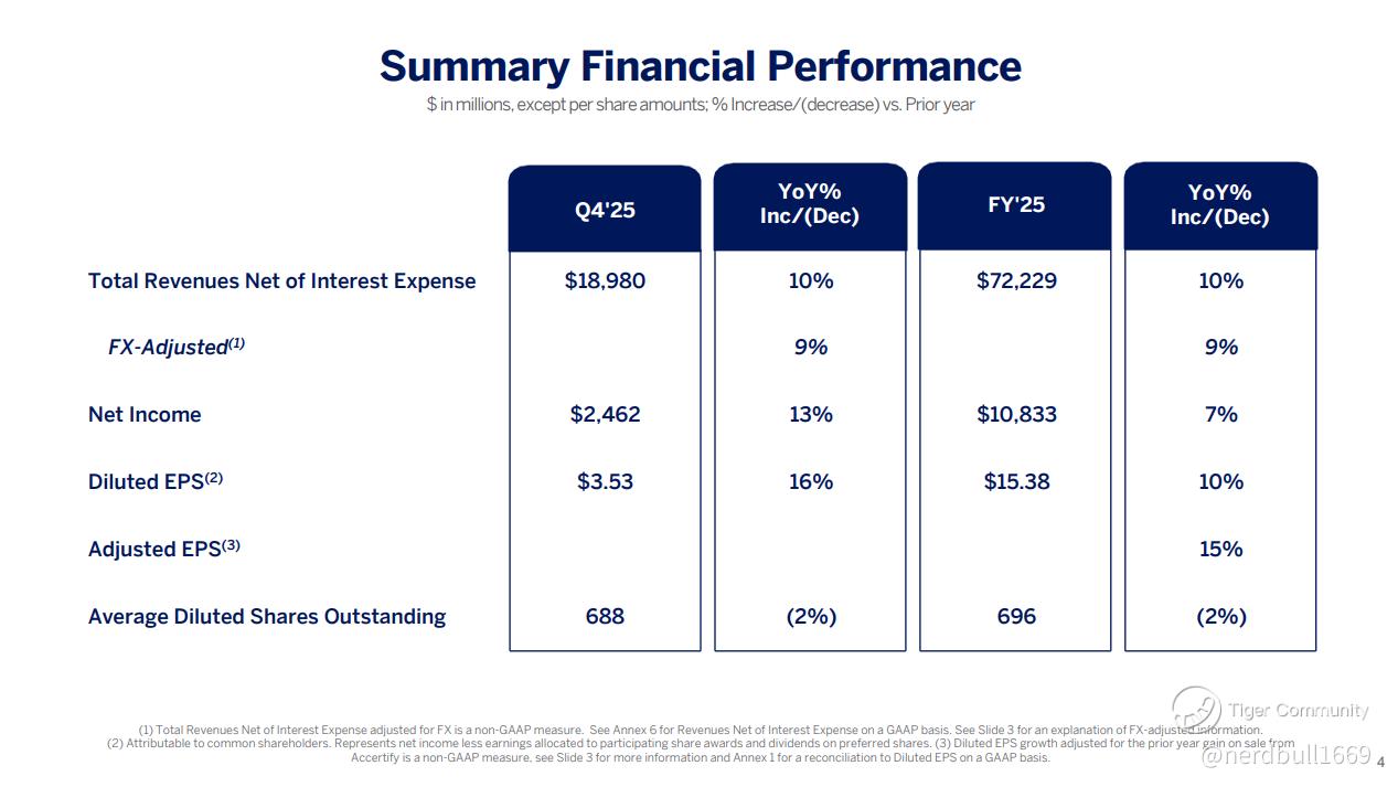 Full-Year Context: 2025 was a record-breaking year for Amex, with total revenue hitting $72 billion (+10%) and full-year EPS at $15.38.