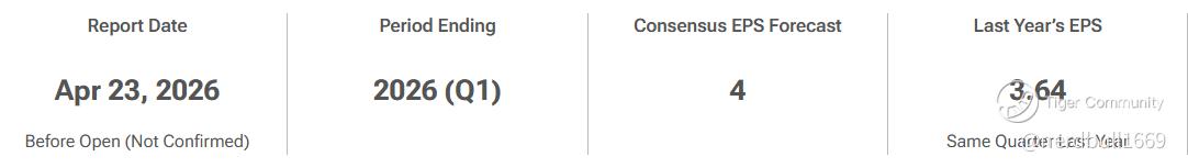 $American Express(AXP)$ is scheduled to report its fiscal Q1 2026 earnings tomorrow, Thursday, April 23, 2026, before the market opens. After a mixed Q4 report where they missed slightly on both top and bottom lines, this quarter is a critical "prove it" moment for their premium-tier strategy and the recent Platinum card refresh.