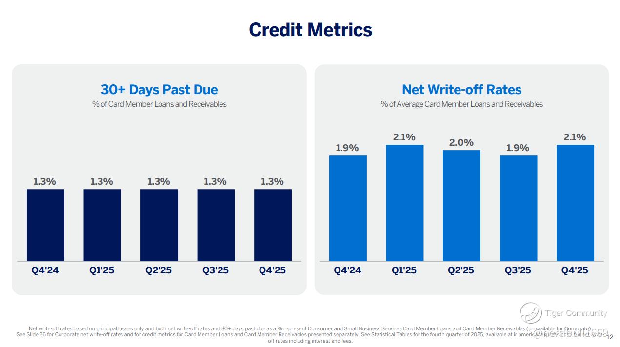 Credit Resilience: While competitors are seeing delinquency normalization, Amex has maintained rates near 1.3%. Any spike toward 1.5% could signal that even high-earners are finally feeling the "higher-for-longer" interest rate environment.