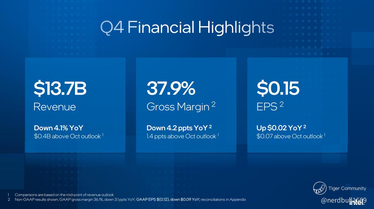 Revenue: ~$12.4 billion (consistent with Intel's guidance of $11.7B – $12.7B).