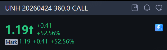 There are 402.77 UnitedHealth option contracts traded on Tuesday, up 117% from the previous trading day. Call options account for 65% of overall option trades. Particularly high volume was seen for the $360 strike call option expiring April 24, with 21,173 contracts trading. UNH 20260424 360.0 CALL