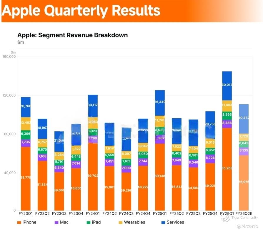 $Apple (AAPL.US)$ enters fiscal Q2 with a strong fundamental setup, but the quality bar is high. Revenue expectations already assume the iPhone cycle remains strong, while the margin debate now depends on Services mix, memory costs, and whether Apple can keep pricing power without damaging demand.