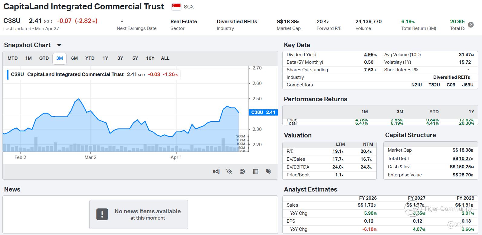 Buy Zone: S$38.50-39.00 2026 Target: S$44.00 (14% upside)—conservative, but the dividend yield sweetens the deal