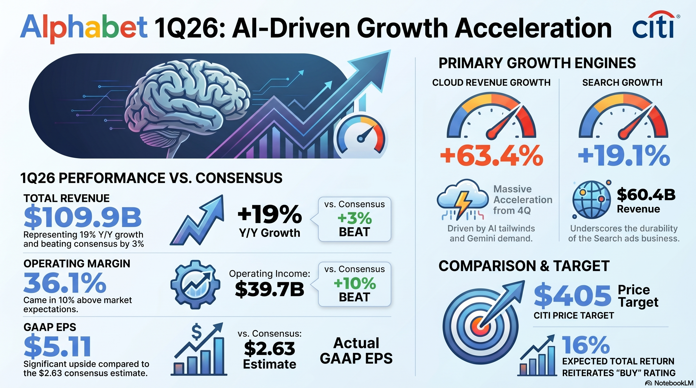 - Citi on $GOOG$ (Buy, PT $405): Cloud reacceleration is the headline. TPU + Gemini demand driving upside. PT based on 29x 2027E GAAP EPS of $13.92 — premium justified by Cloud trajectory.