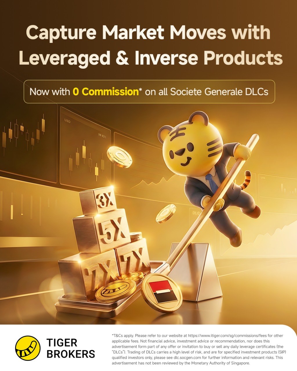 *T&Cs apply. Commission-free benefit valid until further notice. Please refer to our website at https://www.itiger.com/sg/commissions/fees for other applicable fees. Not financial advice, investment advice or recommendation, nor does this advertisement form part of any offer or invitation to buy or sell any daily leverage certificates (the “DLCs”).